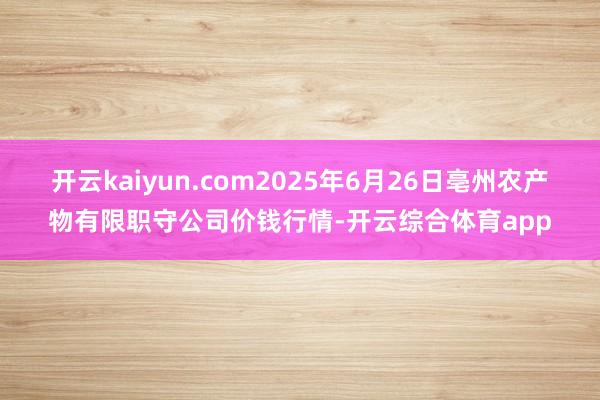 开云kaiyun.com2025年6月26日亳州农产物有限职守公司价钱行情-开云综合体育app