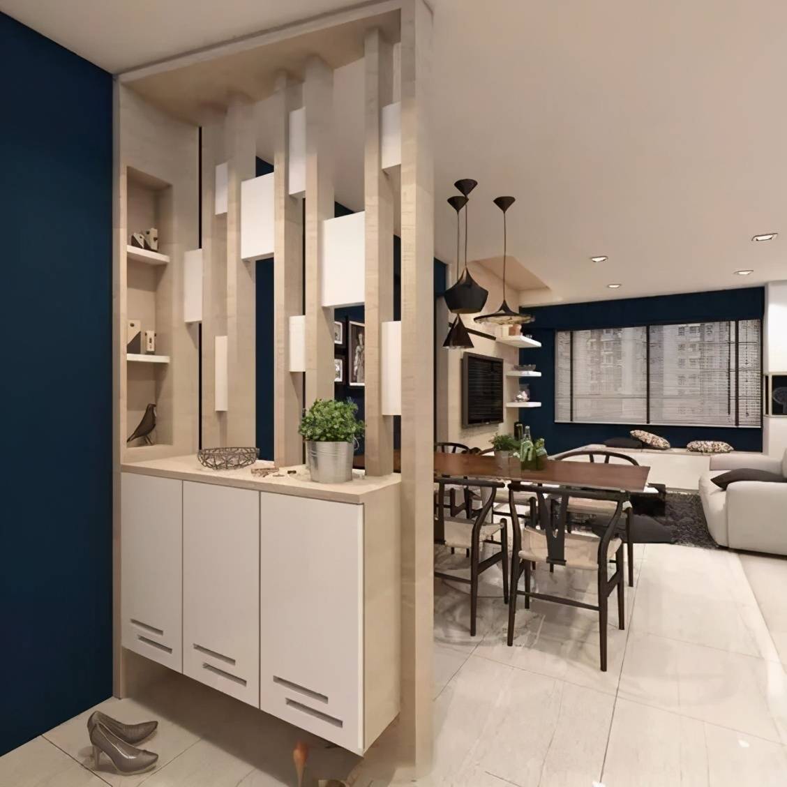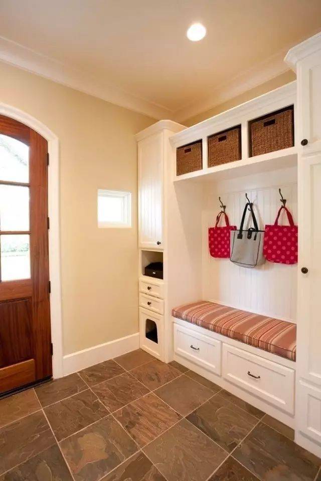 玄关鞋柜的功能不应只是局限于抛弃鞋子,可进行截止的功能拓展。