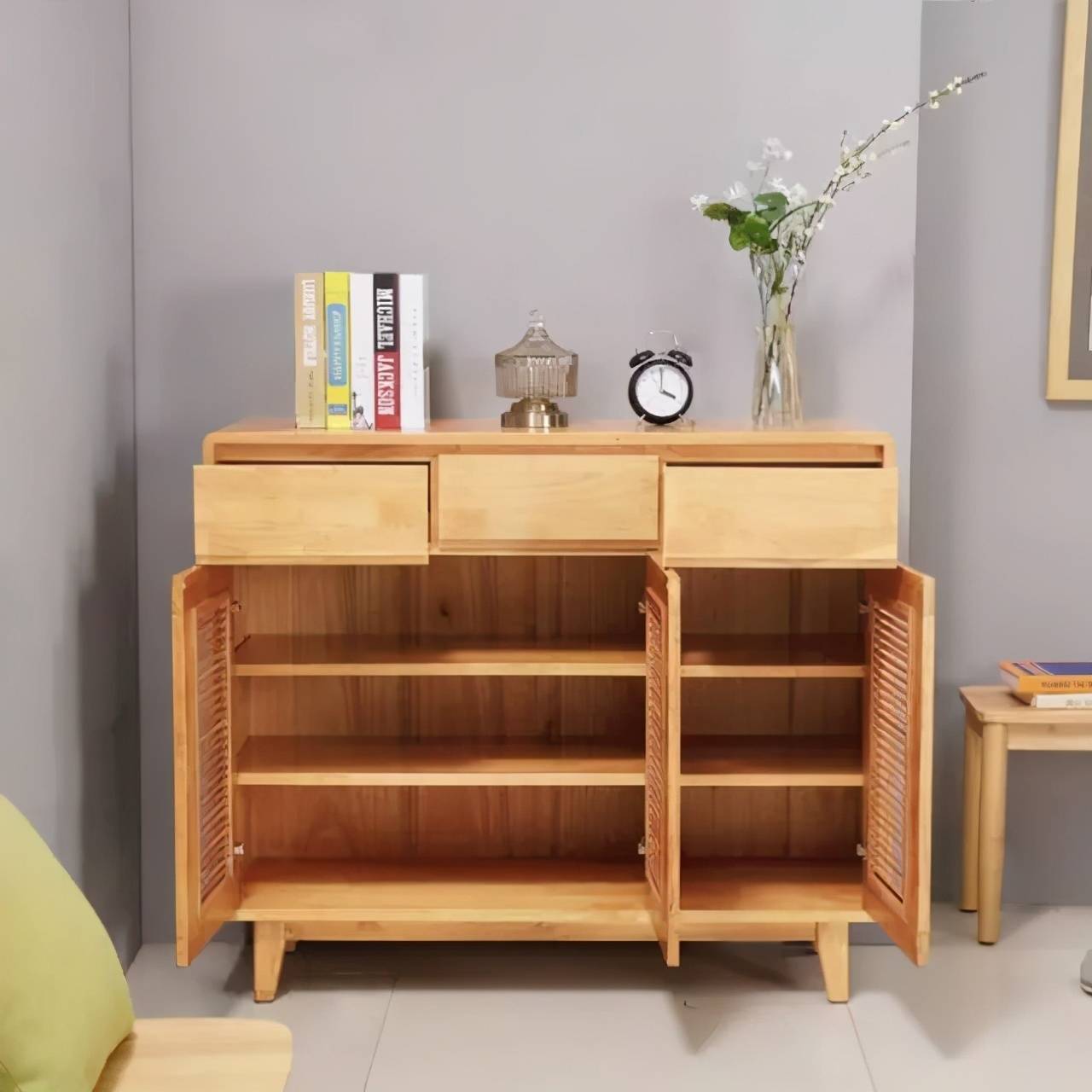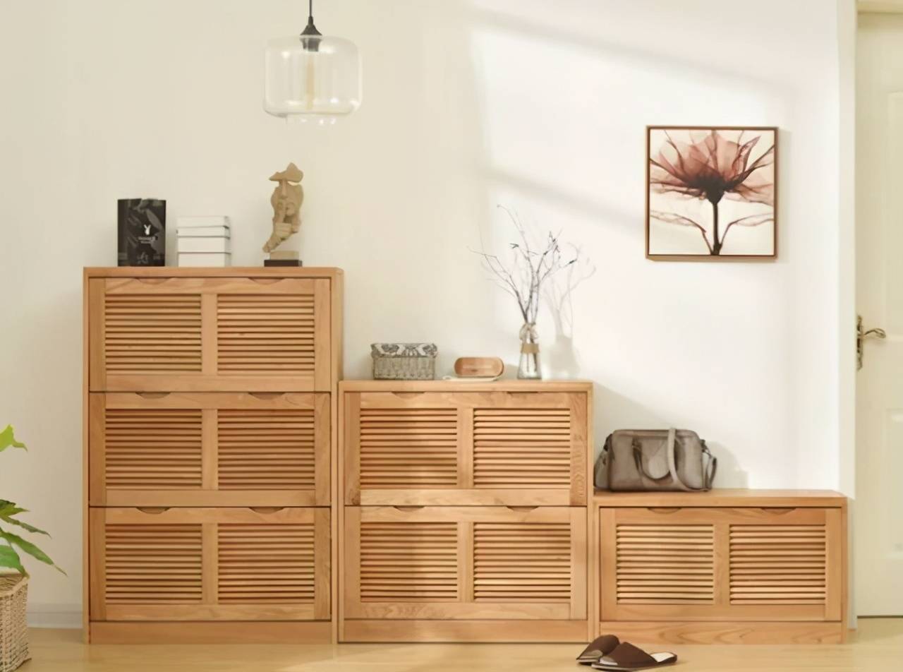鞋柜毕竟是用来抛弃鞋子的,保握透风透气智商幸免鞋柜产生异味。在鞋柜门的选拔上,可挑选百叶式的,以此保握鞋柜的透气性。