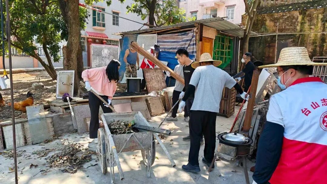 台山市纪委监委党员志愿者在香雁湖村开展爱国卫生通顺,对房前屋后的积水容器、下水谈沟渠等蚊虫易繁殖区域进行全面清算。受访者供图