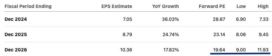 台积电的EPS增长势头合手续强劲。为止2025年12月的财年,每股收益预期为8.79好意思元,股票预期市盈率为23.14。为止2026年12月的财年,每股收益预期为10.36好意思元,股票预期市盈率仅为19.64。从增长跑说念、护城河和达成邃密收益的运营成果来看,这一数字特殊存眷。