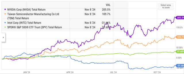 本年迄今,台积电的股票以109%的总酬金率遥遥最初。除了英伟达以外,这是酬金率最高的股票之一,远远卓绝了好多其他竞争敌手。