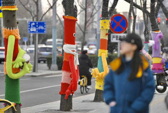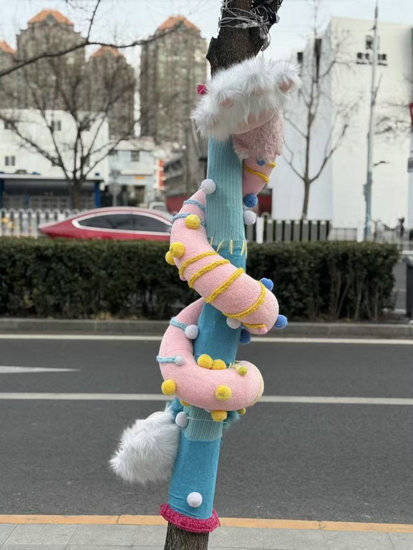 近日开云kaiyun.com,北京朝外UIC街区的行说念树身披彩色毛线“冬装”的景不雅握续走红。